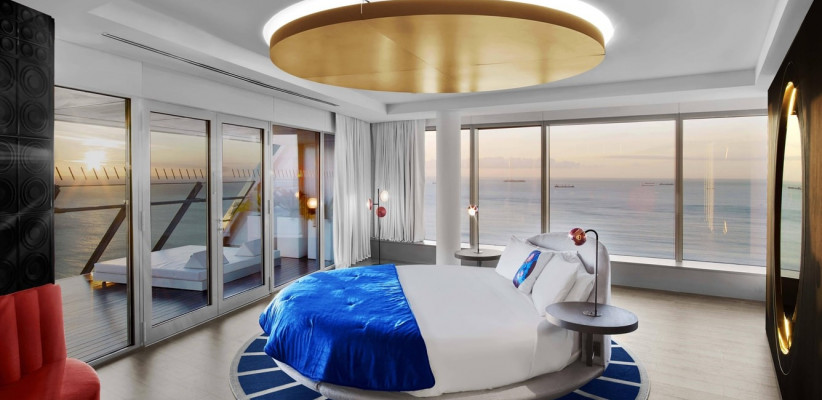 98 м2, терраса с видом на набережную, спальня с двуспальной кроватью размера king-size, рабочая зона. Максимальное количество гостей: 3.Extreme Wow Suite