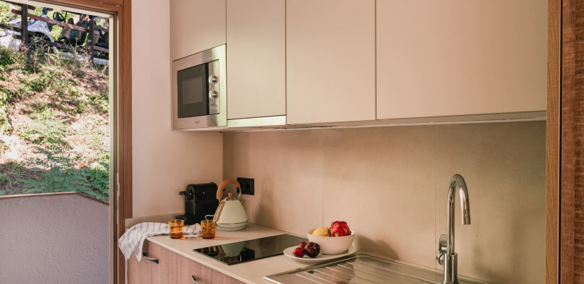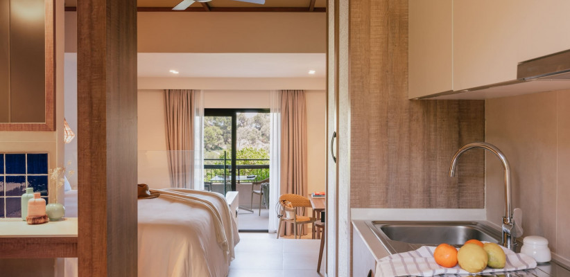 36 м2, однокомнатный номер открытой планировки (спальня + зона отдыха), двуспальная кровать или две односпальные, балкон/террасаZel Junior Suite Garden View with Kitchen/ Джуниор Сьют с видом на сад и кухней