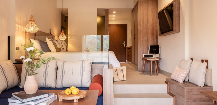 Главная особенность отеля – формат курорта в стиле «средиземноморской деревни», где пространства плавно переходят из внутренних зон в открытые: центральное патио, террасы, зоны отдыха и виды на море создают ощущение жизни на свежем воздухе.