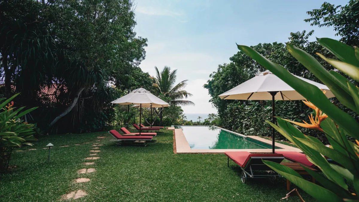 200 м2, терраса с обеденной зоной, прямым доступом к общему инфинити-бассейну и видом на океан и сады, кровать super king-size, гостиная с баром, сауна. Максимальное количество гостей: 3.Pool Pavilion