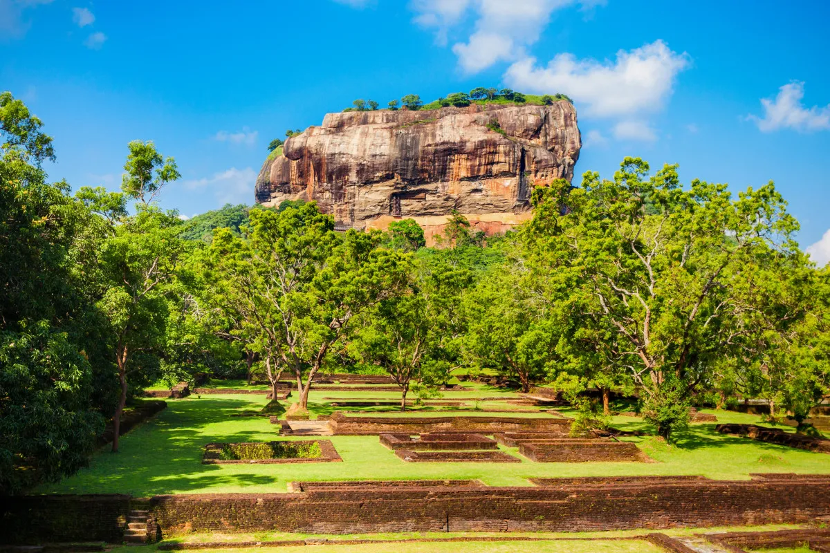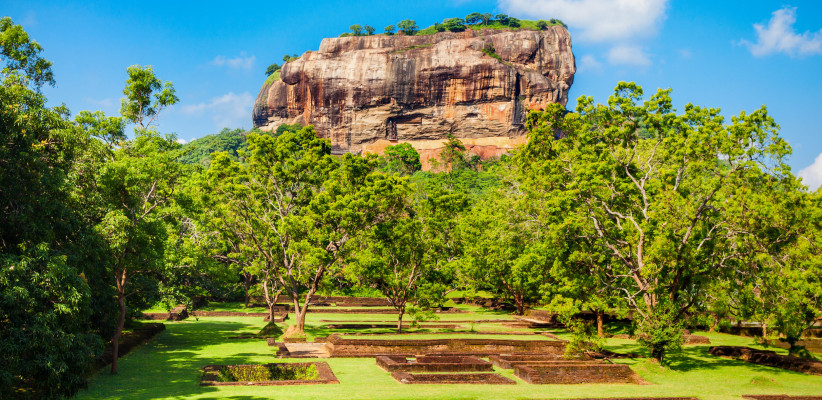 Подъем на скалу Сигирия (V вв. н.э) «Крепость в небесах». Живописная гора, также известная как «Львиная скала», является одной из главных достопримечательностей страны. На высоте около 200 м король Кассапа в V веке возвел дворец, вход в который «охранял» огромный каменный лев. Из древних описаний фронтон дворца, выстроенного из мрамора и окруженного садами и водоемами, был выложен драгоценными камнями. Хорошо сохранился гигантский королевский трон. Из древних описаний также упоминаются галерея с фресками и «зеркальная стена», отполированную с помощью минерала. Фрески, изображающие «небесных дев», сохранили свои яркие цвета. К сожалению, из 500 фресок сохранились только 18. Памятник находится под охраной ЮНЕСКО.
