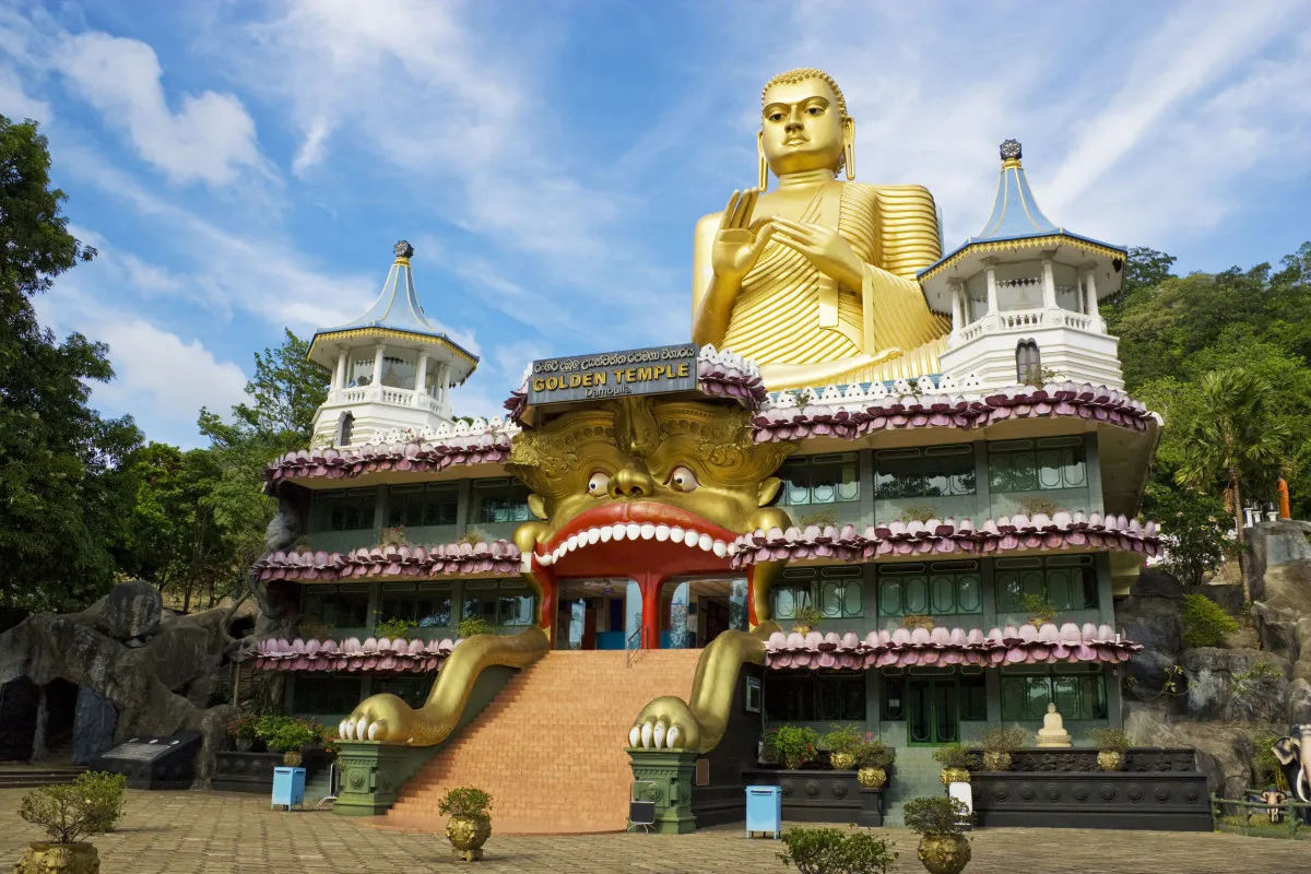 Это самый известный горный храм Шри Ланки. Храм, состоит из пяти пещер и известен самым большим собранием статуй Будды (некоторым из них свыше 2000 лет). Цветные фрески украшают потолок и стены храма, здесь отображены главные моменты жизни Будды: его рождение, отречение от царской жизни, прозрение, семь недель после озарения, чтение первой проповеди, уход в блаженство Нирваны.