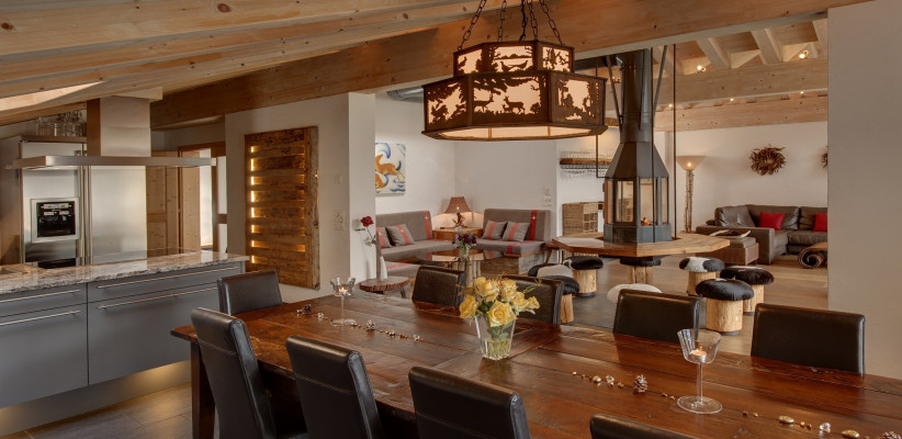 Шале Penthouse Zermatt Lodge расположено в швейцарском курорте Церматт, в 50 м от главной улицы, в 5 минутах ходьбы до центра деревни и горнолыжных подъемников Sunnegga или Gornegrat. Занимает весь верхний этаж плозадью 320 кв. м. С балконов открывается вид на крыши домов и Маттерхорн.