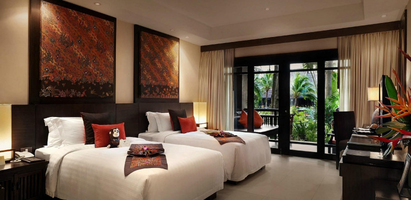 Отдельно стоящие виллы с видом на сад, номер с визуальным делением на зону гостиной и зону спальни