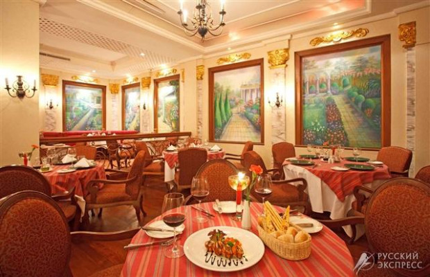 7 ресторанов: “Kiko (японская кухня), “Palmyra Grill” (маленький ресторан французской кухни, романтические ужины при свечах), “Franco Roma” (итальянская кухня, кофе и свежая выпечка, мороженое по домашним итальянским рецептам), “Thai Orchid” («королевская» тайская кухня, официанты в изысканных национальных костюмах, шоу классических тайских танцев по вечерам), “Diamond Hut” (барбекю из свежайших морепродуктов), “Korean Hut” (мясное барбекю, традиционная корейская кухня), “Ocean View Coffee Shop” (международная кухня); 4 бара