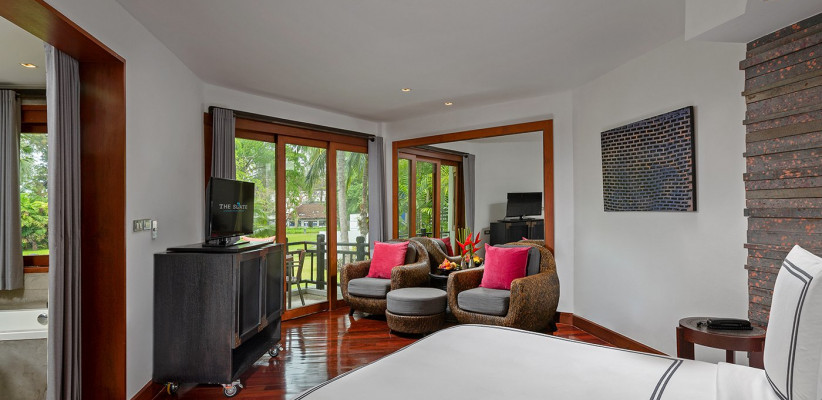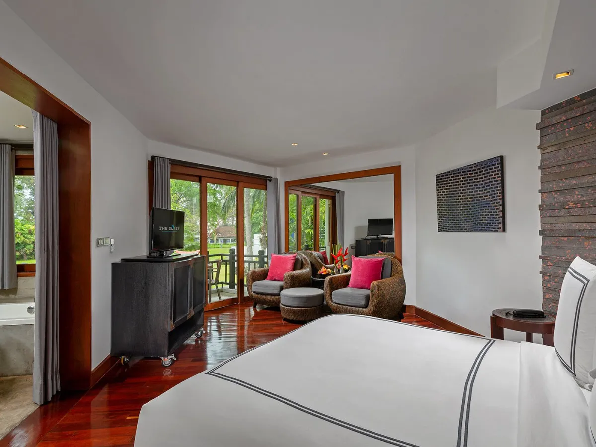 35 м2, двуспальная кровать размера «king-size» или две односпальные кровати, зона отдыха, балкон с видом на сады и лагуны. Количество гостей: 395 Premium Pearl Bed Suite