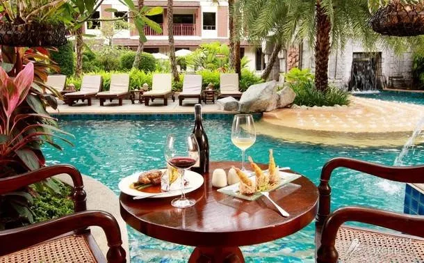 Palm Leaf Restaurant (европейская, тайская) время работы - 06:30-10:30 ; Angkor Restaurant (международная, легкие закуски, напитки) время работы - 10:00-18:00 ; The Palm Restaurant (европейская, тайская) время работы - 18:00-23:00; Pool Bar (легкие закуски, напитки) время работы - 10:00-19:00