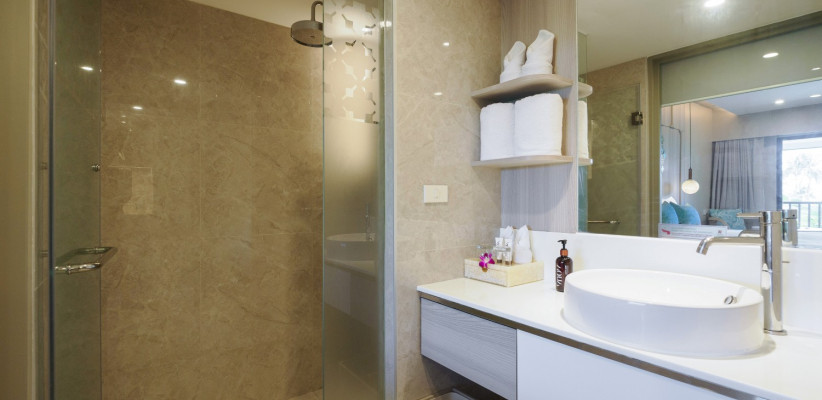 100 м2, кровать king-size, гостиная, столовая зона, гардеробная, ванная комната с отдельной душевой кабиной, джакузи с видом на океан, балкон.Two-Bedroom Royal Thani Suite – королевский люкс с двумя спальнями