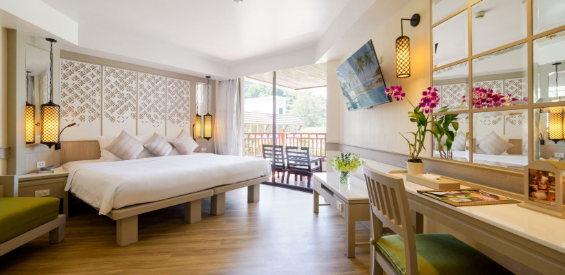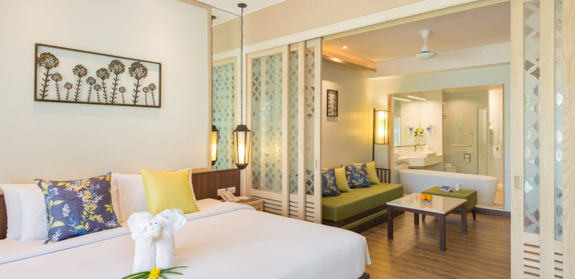 Katathani Phuket Beach Resort предлагает гостям три различных концепции отдыха, распределенных по отдельным корпусам. Thani Wing ориентирован на уединенный отдых с элегантными люксами у моря. Bhuri Wing создан для активных туристов, а Vhari Water Park Wing подойдет семьям с детьми благодаря собственному аквапарку на территории. Интерьеры номеров выполнены в изысканном стиле, гармонично сочетающем современные элементы с традиционными тайскими мотивами.