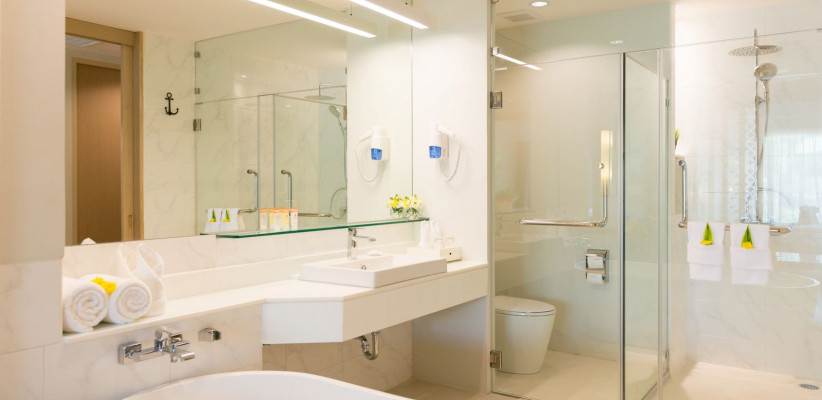 50 м2, номер с со спальной и гостиной зонами, разделенными выдвижной дверью, кроватью king-size и диваном, который трансформируется в две выдвижные кровати, отдельной ванной и душем, балконом. Максимальное количество гостей: 2 взрослых и 2 детей.Pool Access – номер с доступом к бассейну