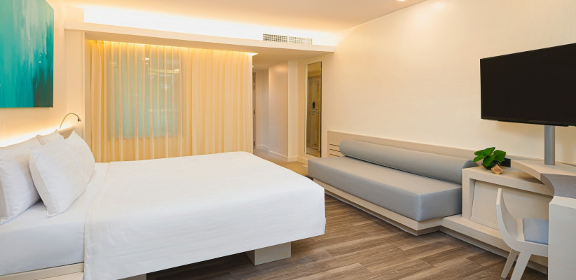 38 м2, номер с балконом, видом на городской пейзаж, одной кроватью king-size или двумя односпальными кроватями, ванной и / или тропическим душем в ванной комнате. Доступно размещение одной дополнительной кровати.Premium Sea View Room – номер премиум с видом на море
