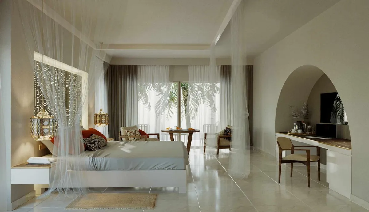 84 м2, с видом на океан, спальня с двуспальной кроватью размера king-size, софа, рабочая зона. Максимальное количество гостей: 2.Deluxe Room