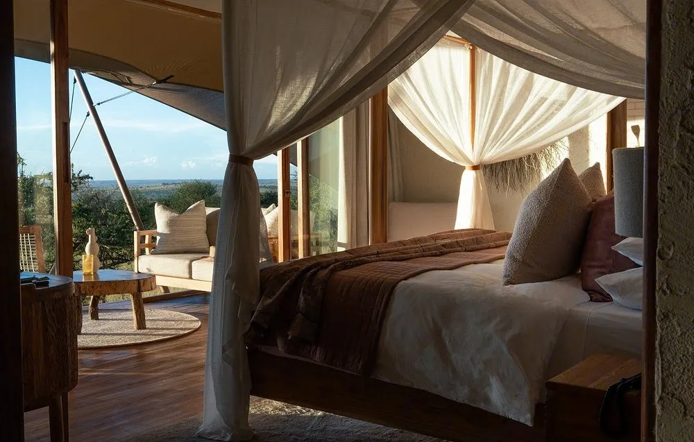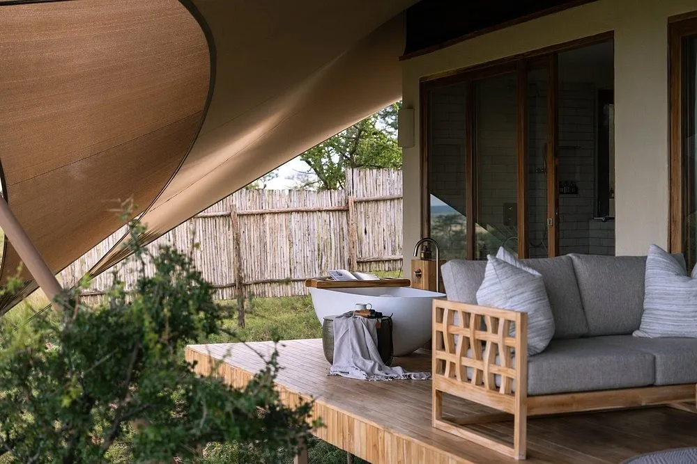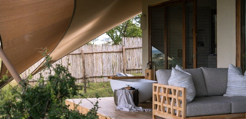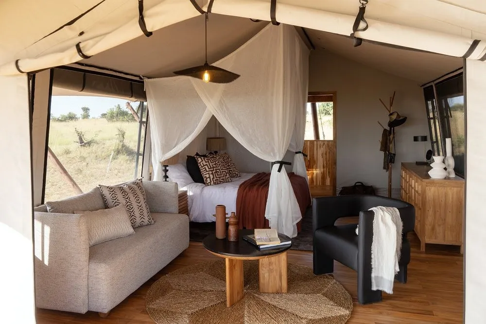 просторная тентовая вилла, с видом на саванну, 2 спальни, две отдельные зоны, большая терраса, персональный дворецкий и частный автомобиль для сафари, количество гостей: 4 взрослых + 2 детейSanctuary Tented Suite