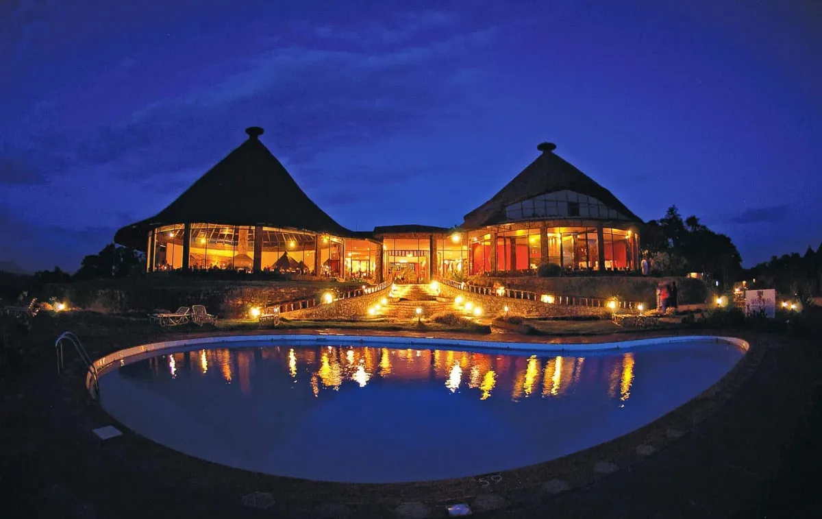 Ngorongoro Sopa Lodge расположен непосредственно на высокой окраине кратера Нгоронгоро – 0,5 км над уровнем дна кальдеры, что обеспечивает непревзойдённые виды на дикую природу и закаты. Лодж оформлен в традиционном африканском стиле с круглыми домиками-rondavel и декоративными элементами, гармонируя с природой вокруг. Это крупный отель-лодж с просторными общими зонами и великолепными панорамными окнами, которые открывают вид на кратер.