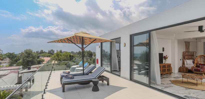 165 м2, терраса по всему периметру люкса, частичный вид на океан, двуспальная кровать или двуспальная кровать + односпальная кровать, гостиная, гардеробнаяRooftop Suite - Sea View/ Сьют (верхний этаж)