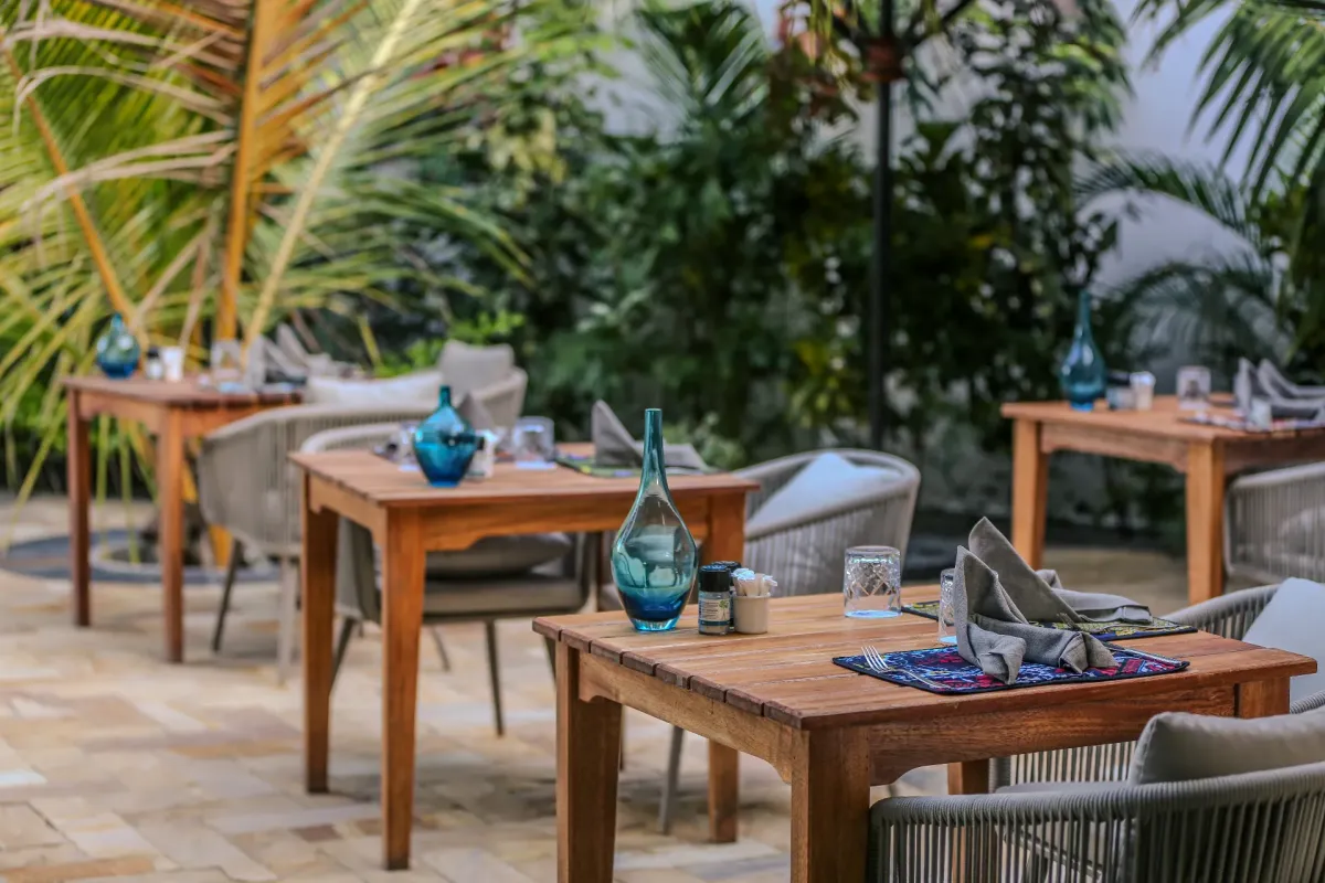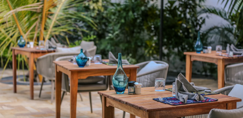 - Cinnamon — ресторан на 1 этаже с видом на море. Предлагает блюда азиатской кухни фьюжн, суши и классические блюда