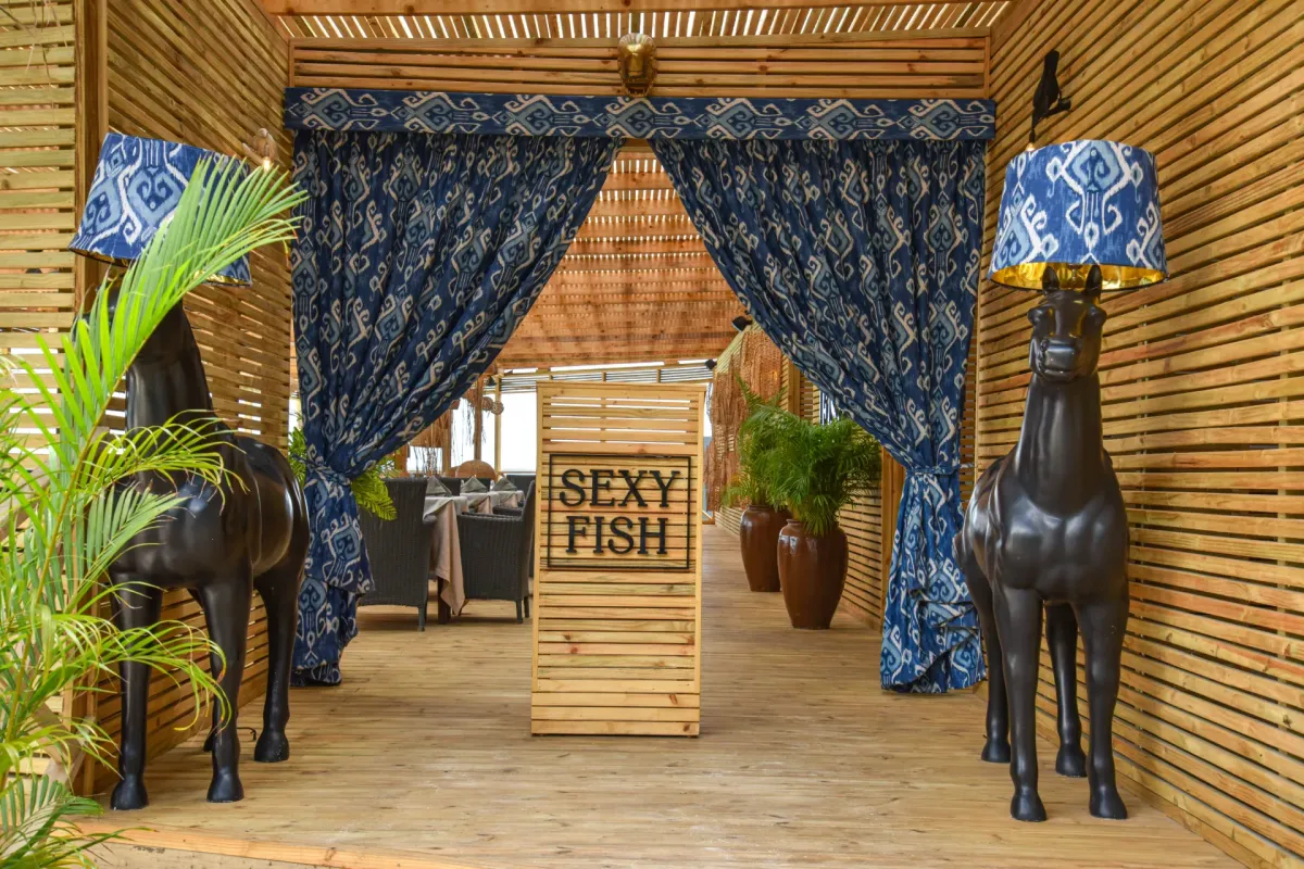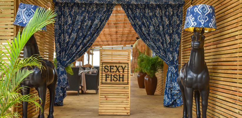 - Sexy Fish — ресторан в стиле al fresco, расположен на террасе над пляжем. В меню — свежие морепродукты