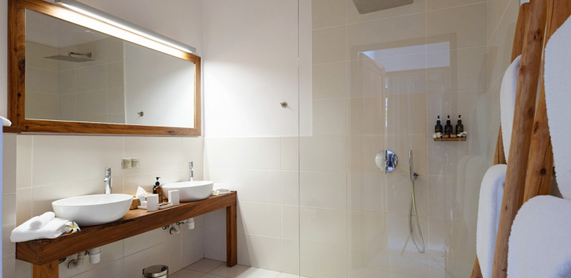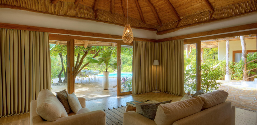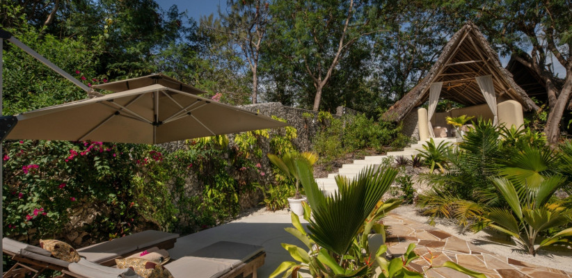 55 м2, номер с частным садом и джакузи. В номере: две спальни с king-size кроватью и двумя односпальными кроватями, ванная комната с тропическим душем. Максимальное количество гостей: 4.