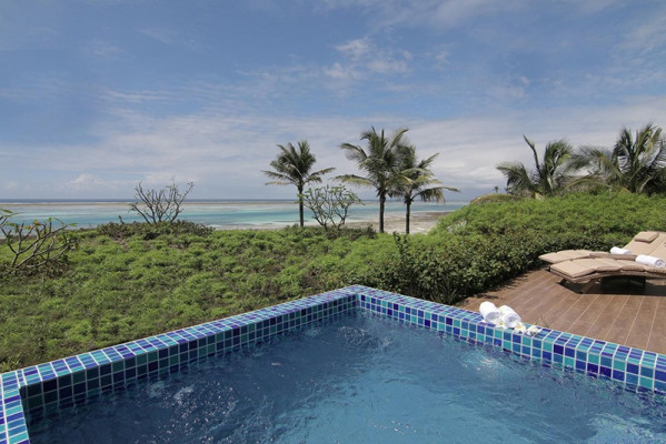 100 м2, вилла с двуспальной кроватью и прямым видом на Индийский океан. Включает зону отдыха, гардеробную и просторную ванную комнату с душевой кабиной, отдельно стоящей ванной и двойной раковиной. Частная терраса, окруженная бугенвиллией и пальмами, дополнена бассейном с видом на океан.