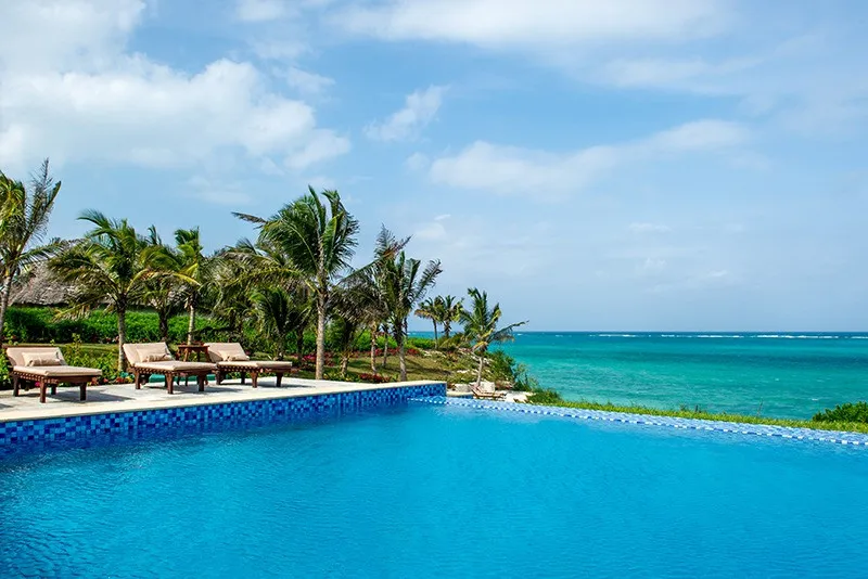 - Отель расположен на юго-восточном побережье Занзибара, на прибрежном утесе с панорамными видами на Индийский океан.