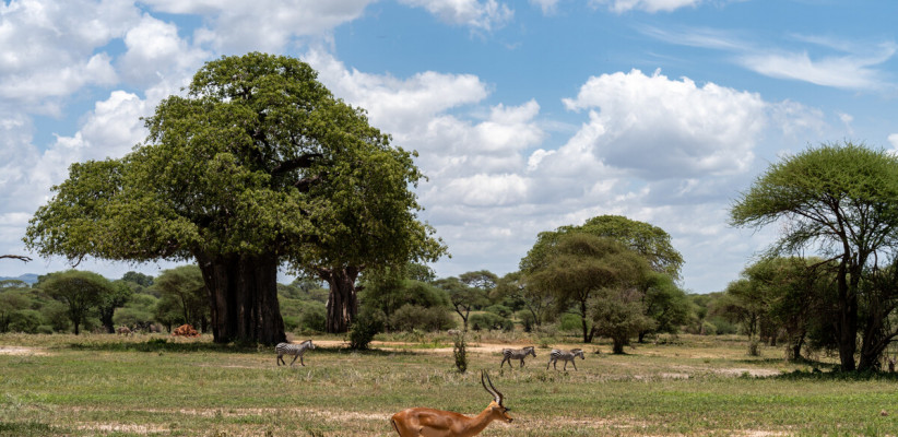 Тарангире – основная особенность парка – вековые леса с баобабами. На территории Тарангире много львов, пятнистых гиен и леопардов. А в сухой сезон с середины июня по ноябрь здесь можно встретить огромные стада слонов, буйволов, зебр, жирафов и антилоп гну.