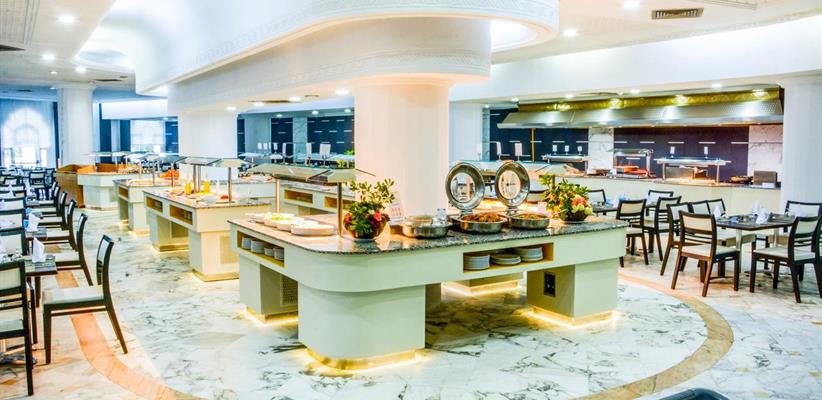 На территории отеля работают главный ресторан, ресторан с обслуживанием по меню, кафе, снек-бар, лобби-бар, бар у бассейна.