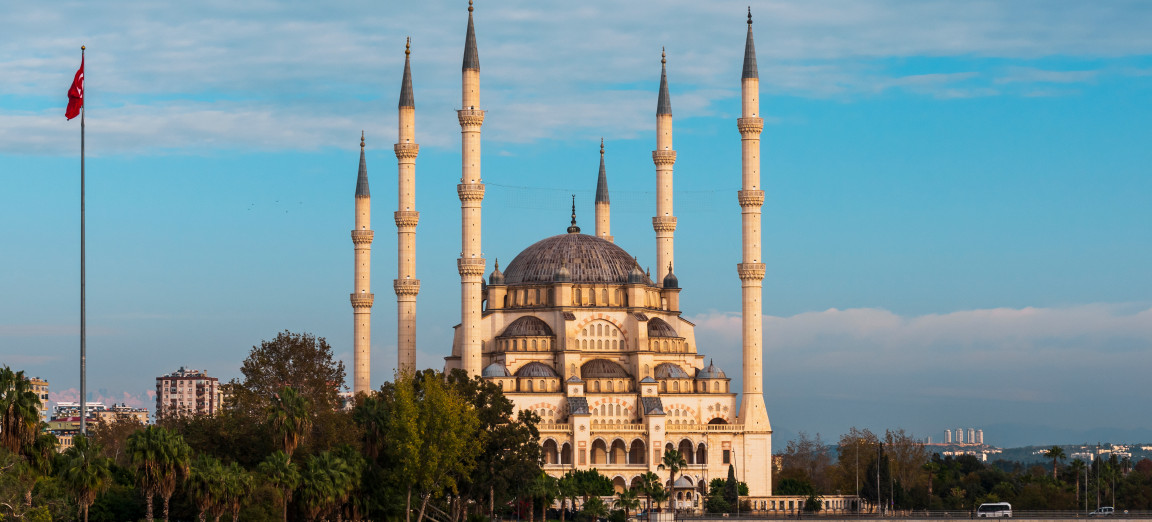 Главная мечеть Сабанджи. Самая большая в Турции и одна из крепнейших мечетей на Ближнем Востоке – Сабанджи имеет шесть минаретов. Архитектурный стиль следует традициям стамбульской Голубой мечети.