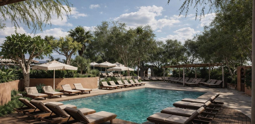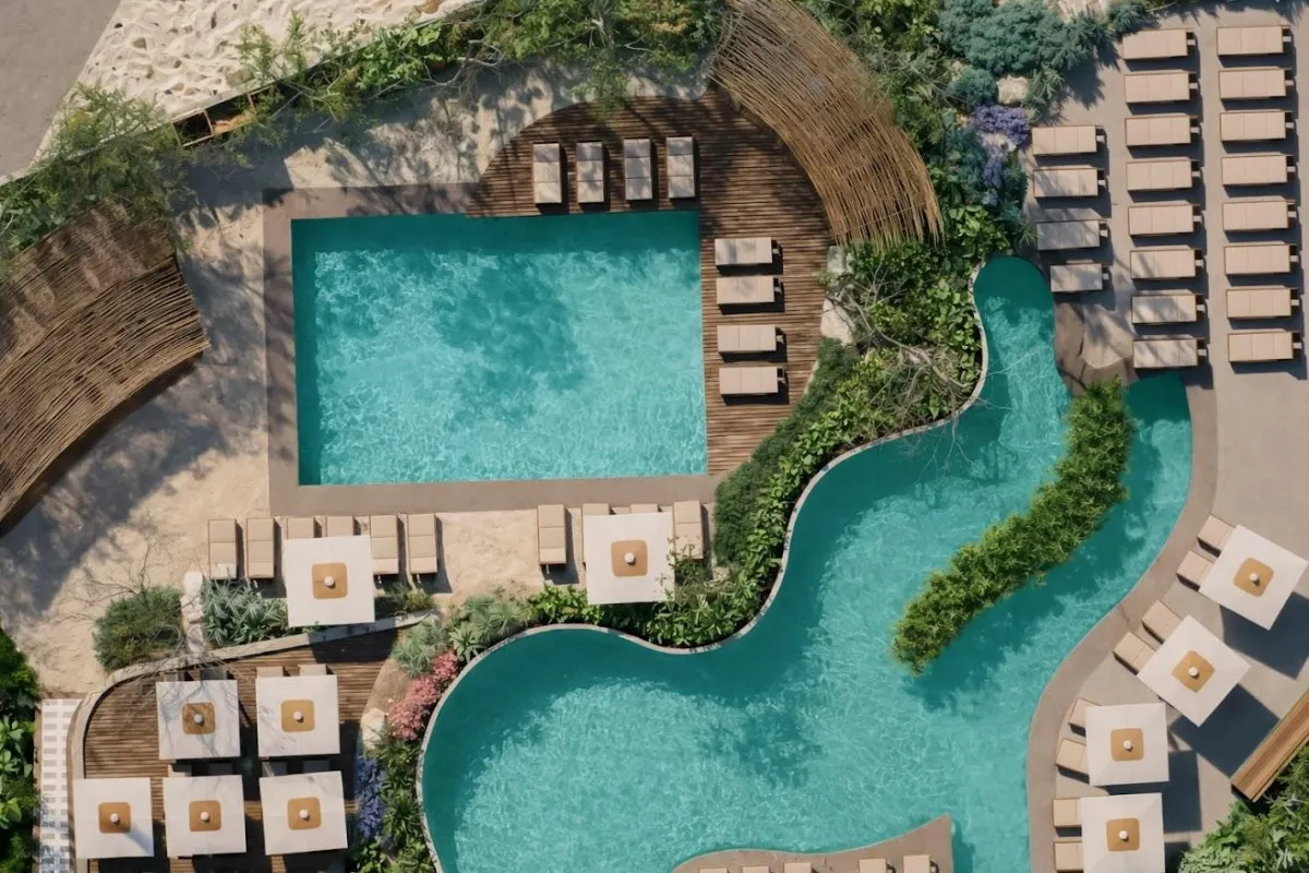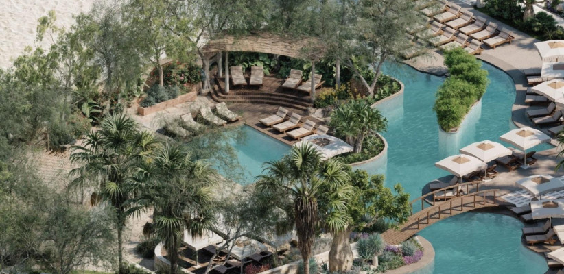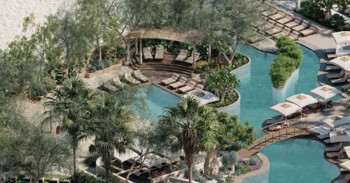 Просторная территория напоминает уединенный частный остров с тенистыми деревьями, небольшими изящными мостами и искусственными лагунами. Частный песчаный пляж находится всего в 150 м от отеля. Туристам предлагается проживание в номерах и люксах с интерьерами, вдохновленными натуральными текстурами и земляными тонами. Из окон открываются виды на сады и море. Некоторые из номеров оснащены джакузи.
