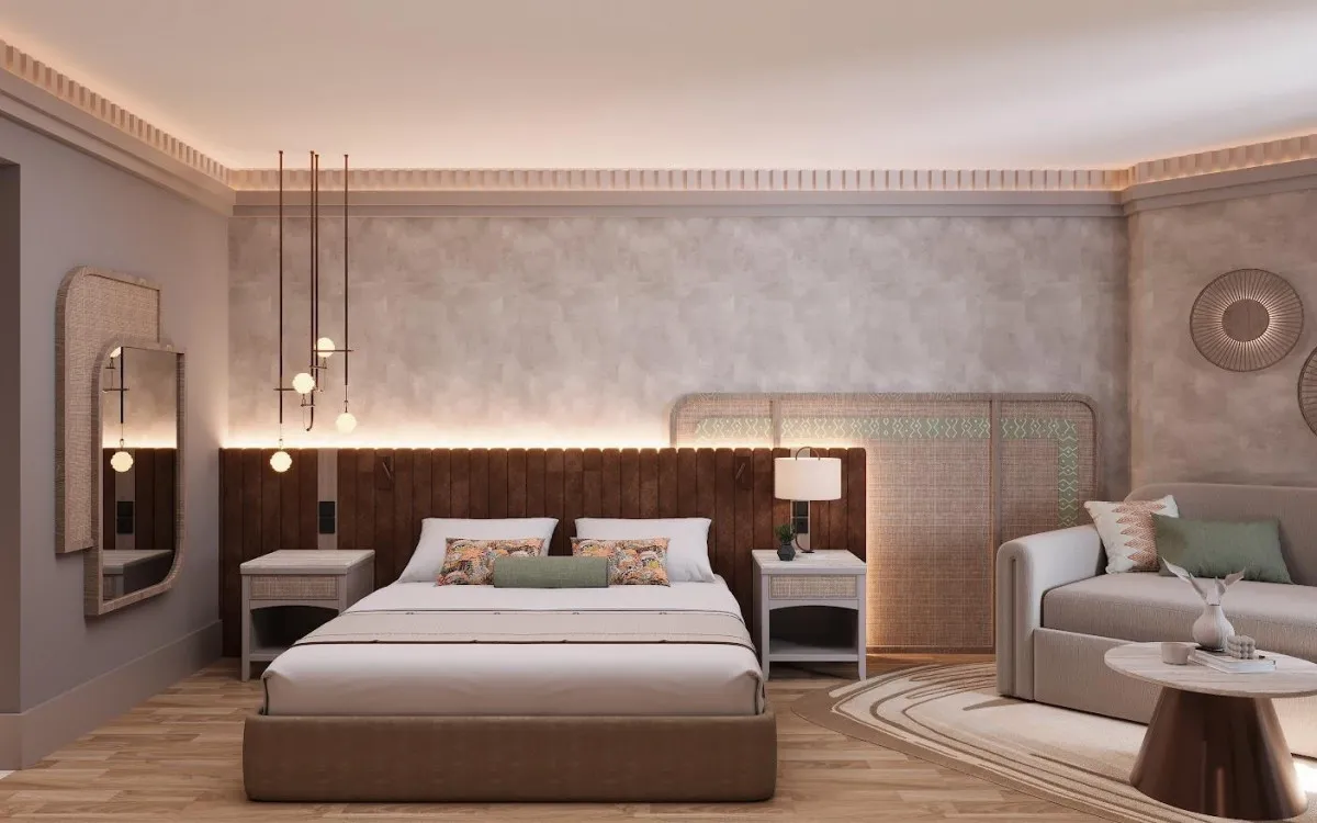 55 м2, улучшенный номер с видом на сад и море, джакузи, двуспальной кроватью или двумя односпальными кроватями, гардеробной, зоной отдыха, балконом. Максимальное количество гостей: 3.Deluxe Land View Room