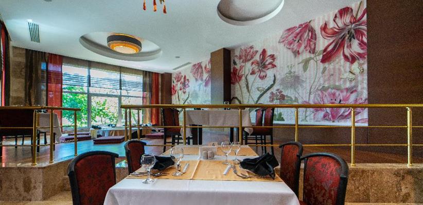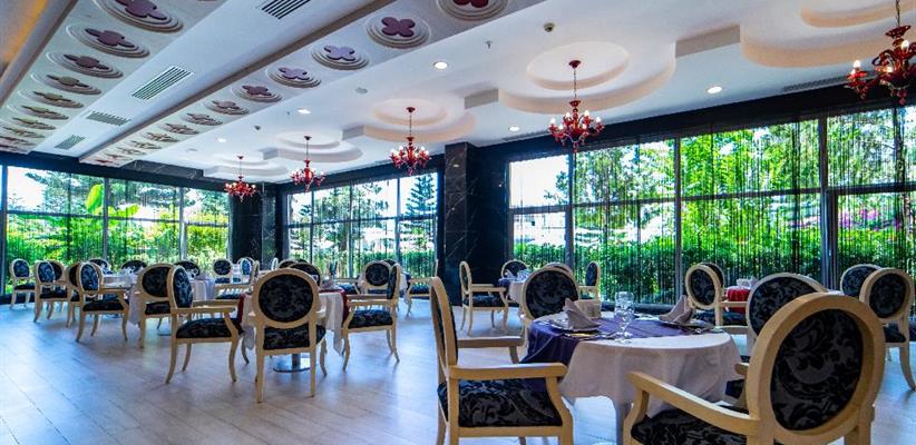 На территории отеля работает главный ресторан с интернациональной кухней, три ресторана с обслуживанием по меню (итальянский, дальневосточный и турецкий), лобби-бар, бары у бассейна и на пляже, снэк-бар.