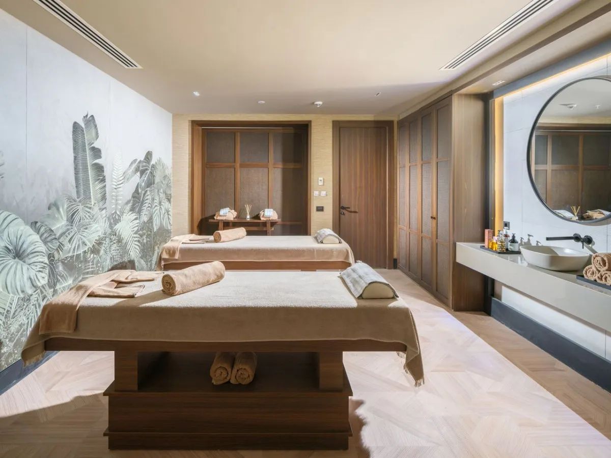 240 м2 (включая сад), вилла состоит из большой гостиной, трех спален и кухни. В гостиной: мягкая мебель, обеденный стол, в двух спальнях – большие двуспальные кровати. В третьей спальне – 2 кровати queen-size. Между гостиной и спальнями есть двери. Столик и зеркало для макияжа, гардеробная. В номере есть 3 отдельные ванные комнаты. На просторной террасе – собственный бассейн с подогревом, зона отдыха, обеденный стол, 6 шезлонгов и софа. Количество гостей: 6Deluxe Double 4 номер с видом на парк приключений Park (2+2/3 чел) (Семейная Зона)
