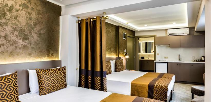 Номера с паркетным полом обставлены мебелью. В каждом номере есть кондиционер, мини-бар, сейф, отопление и телевизор с плоским экраном. В некоторых номерах есть отдельный балкон, турецкая баня или джакузи. Отель предлагает проживание для семей в номерах, люксах, семейных номерах и смежных номерах.