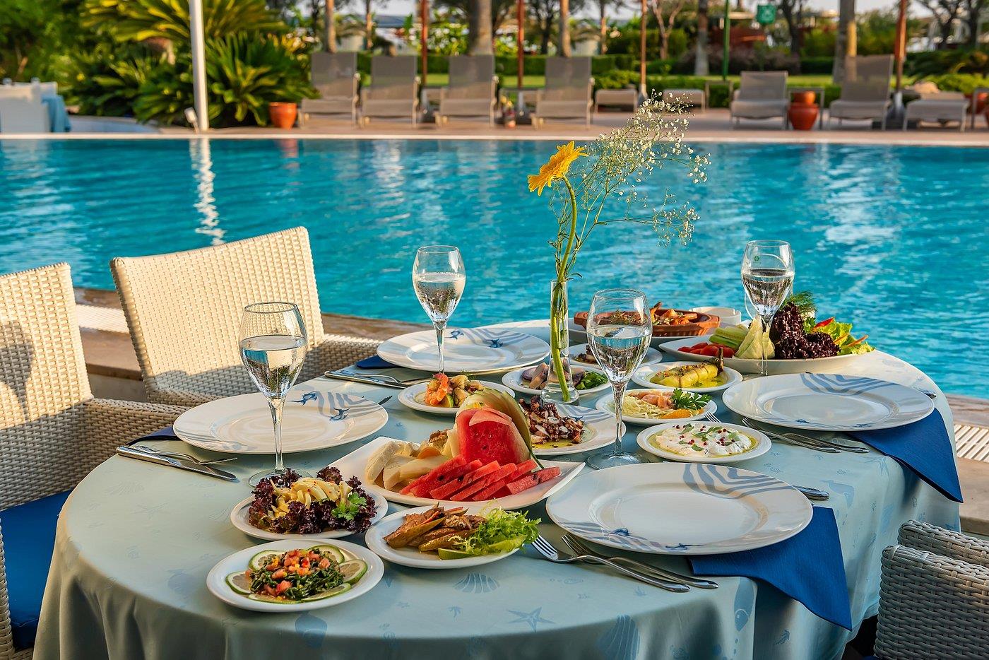 - All Inclusive (AI) – «все включено», трехразовое питание по системе «шведский стол» в главном ресторане отеля, местные алкогольные и безалкогольные напитки, мороженое и закуски в течение дня.