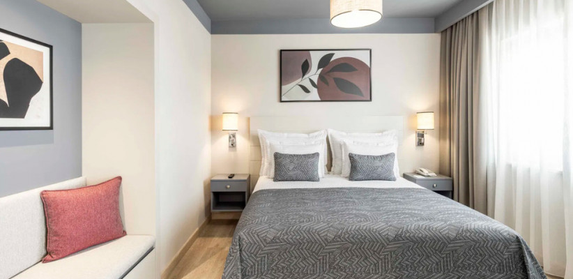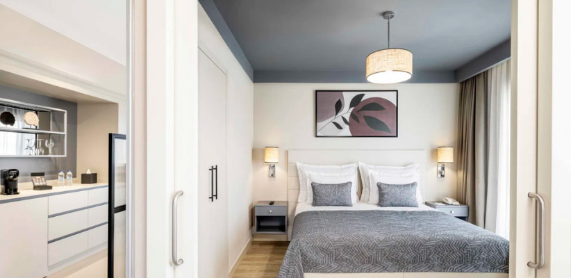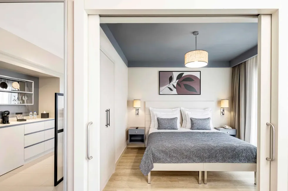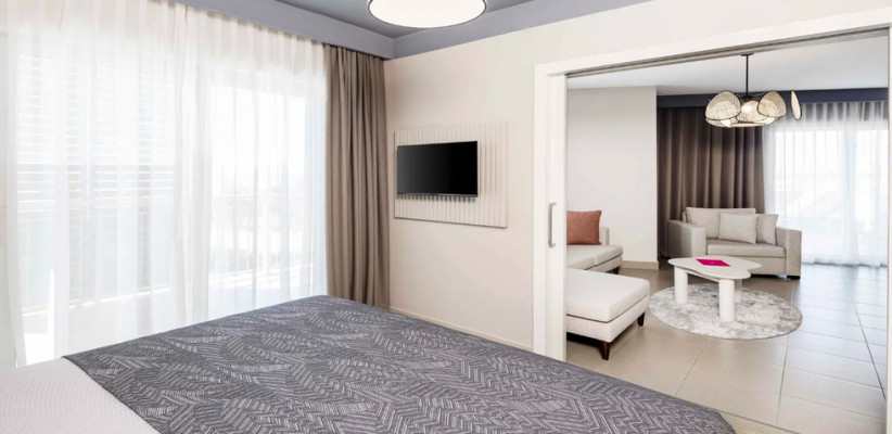 40 м2, спальня с двуспальной кроватью размера king-size или с двумя односпальными кроватями. Максимальное количество гостей: 2.Deluxe Suite Sea View