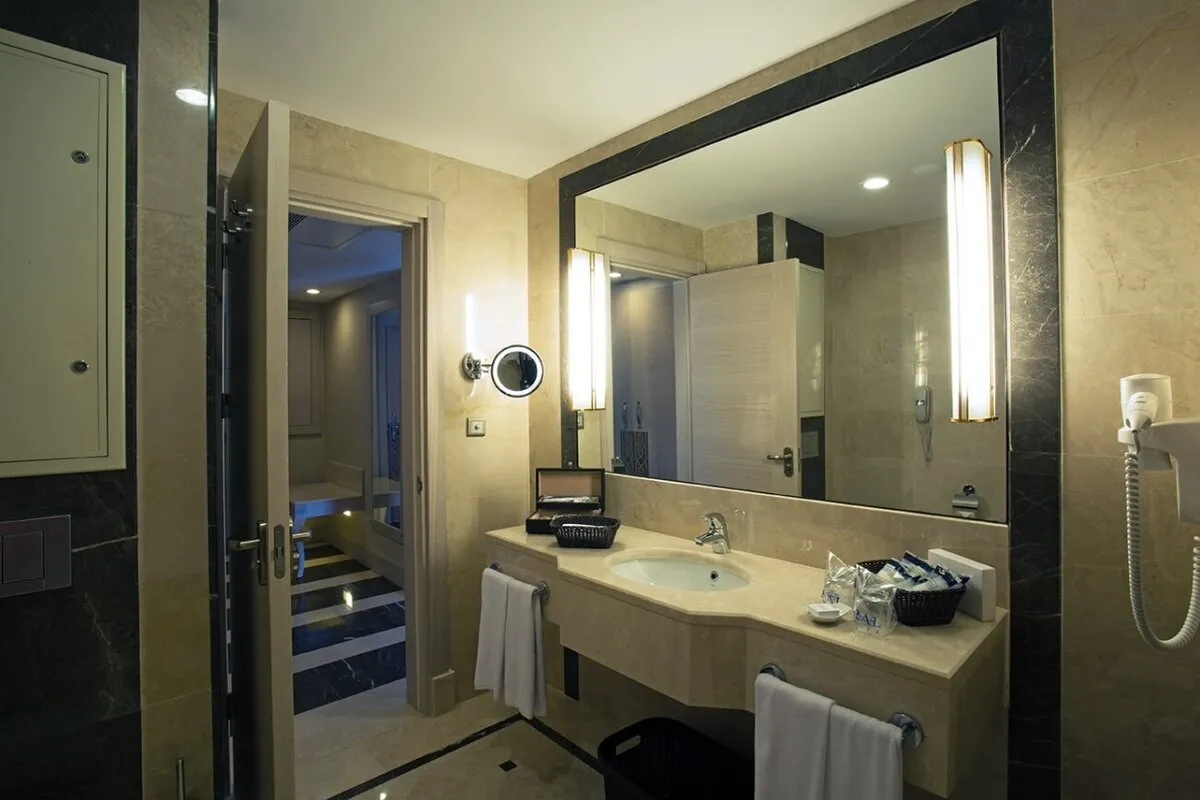 120 м2, три односпальная и двуспальная кровать, диван, гостиная, кухонная зона, рабочая зона, джакузи, бассейн. Количество гостей: 6.Президентский Люкс Тип Б