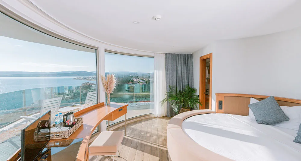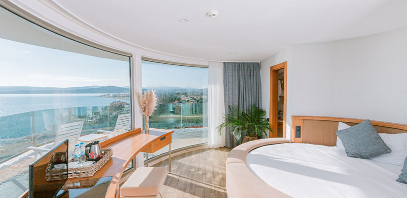 16 м2, панорамный вид на море, большая круглая кровать, количество гостей: 2 взрослыхСемейный номер/ Family Room