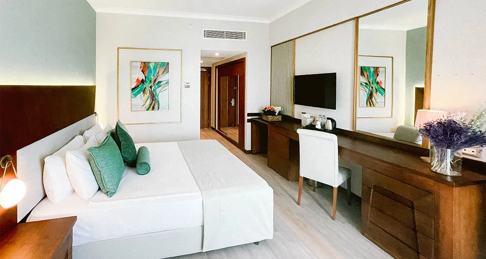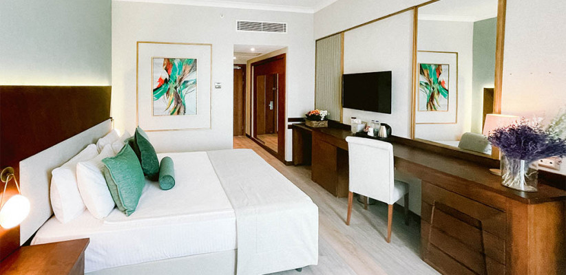 24-26 м2, частичный вид на море, односпальная кровать или двуспальная кровать, количество гостей: 3 взрослых или 2 взрослых + 1 ребенокДелюкс/ Deluxe