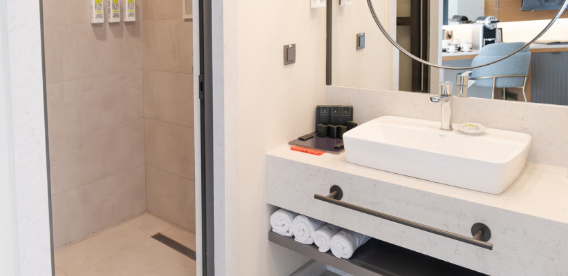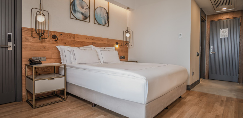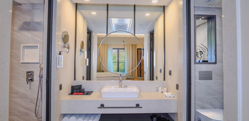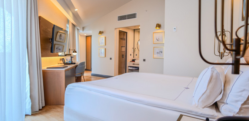 26-30 м2, с видом на море, окрестности или боковой вид на море, спальня с двуспальной кроватью размера king-size или с двумя односпальными кроватями, рабочее место. Максимальное количество гостей: 2 или 3.Superior Corner/ Супериор угловой
