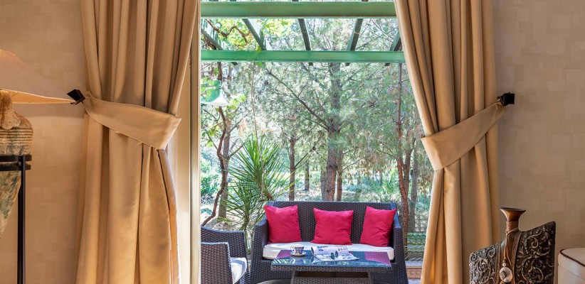 отдельно стоящие виллы с собственной террасой, гостиной и расширенным набором услуг.