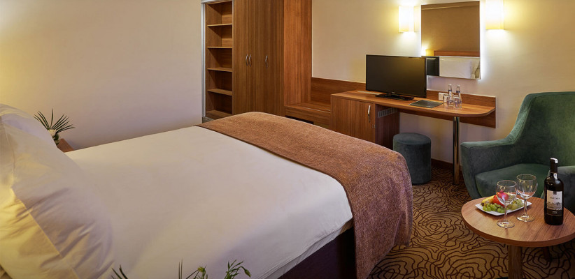 с видом на сад или бассейн, спальня с двуспальной кроватью размера king-size или с двумя односпальными кроватями.Corner Suite/ Угловой сюит