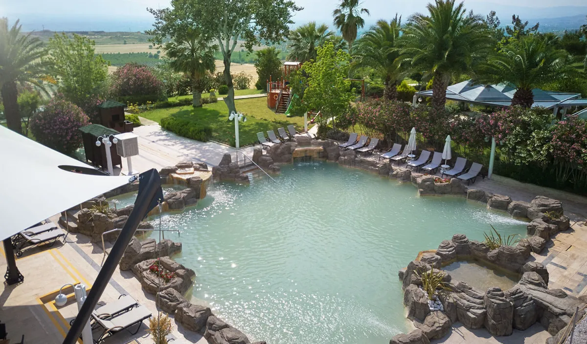 Отель Richmond Pamukkale Termal – один из старейших и наиболее известных термальных отелей в регионе Памуккале (поселок Карахайит), работающий уже более 25 лет. Richmond Pamukkale Termal ориентирован на оздоровительный отдых и популярен среди тех, кто хочет совместить посещение травертинов с купанием в целебных источниках. Он располагает открытыми и крытыми термальными бассейнами с водой, богатой минералами. Вода в крытом бассейне подается без химической обработки. Расстояние от Richmond Pamukkale Termal до аэропорта Денизли (Чардак) составляет примерно 1 час езды (около 60-80 км).
