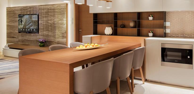 90 отменно оформленных апартаментов с гармоничным зонированием и интерьером в пастельных тонах располагают к отдыху после насыщенного дня. В номерах есть бесплатное подключение к сети Wi-Fi. Просторная ванная комната с банными принадлежностями, полностью оборудованная кухня с обеденным залом, стиральная машина и сушилка в полном распоряжении гостей. Приятный бонус для постояльцев – возможность заказывать еду в номер 24 часа в сутки и наполненный мини-бар с качественными напитками.