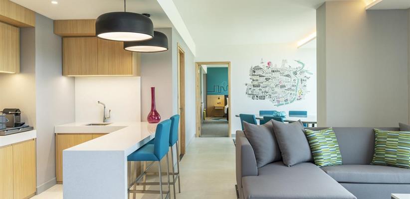 Savvy Suite – площадь 61 кв. м, максимальное размещение 3 человека, кровать king-size, спальня, гостиная, вид на залив.