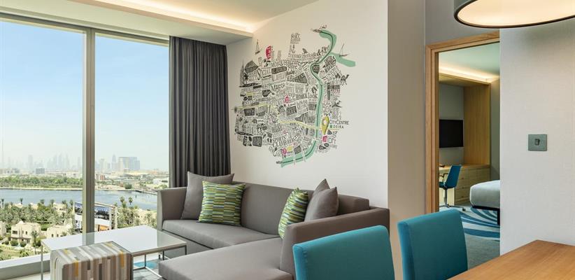 Концепция питания – BB, HB, FB: ресторан Canteen (международная кухня), ресторан Re:fuel by Aloft (легкие закуски на вынос), ресторан Han Shi Fu (китайско-азиатская кухня), ресторан Epitome Dubai (вегетарианский и веганский коктейль-бар), лаундж Re:mix.