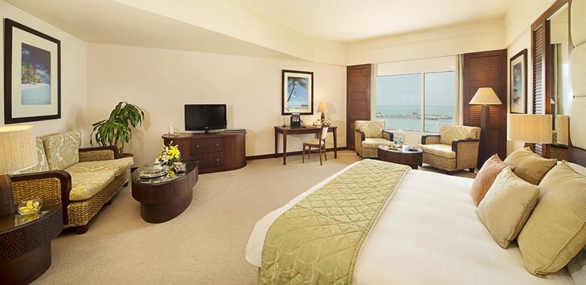 84 м2, вид на океан, живописные сады и пляж, спальня, гостиная, мини-кухня, двуспальная кровать или две односпальныеPresidential Suite