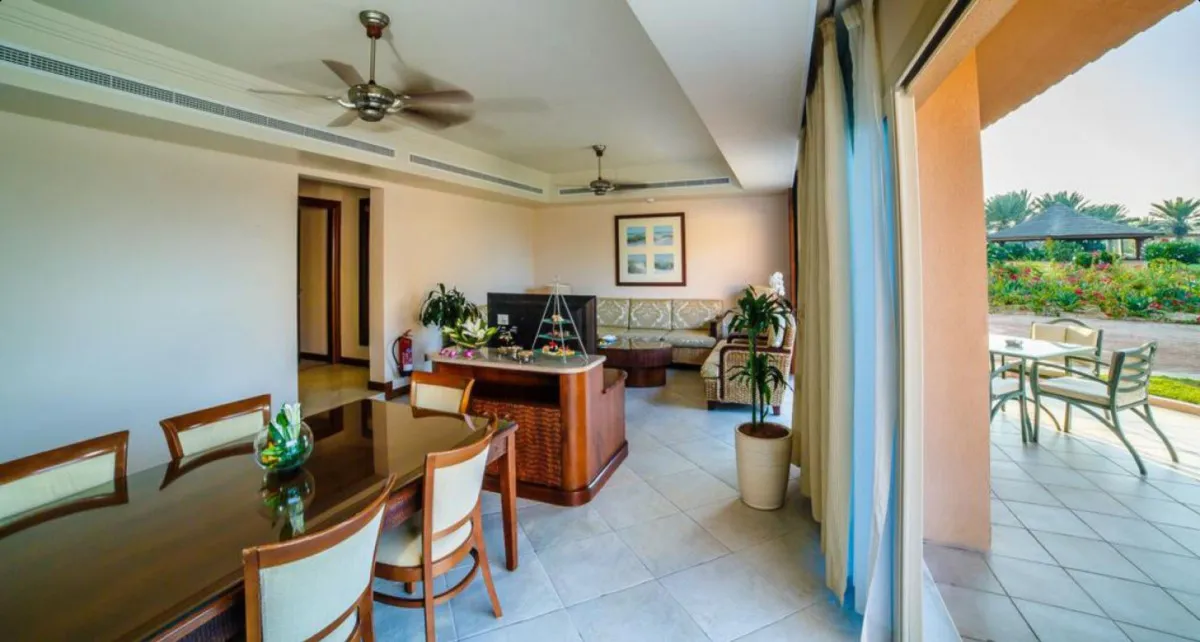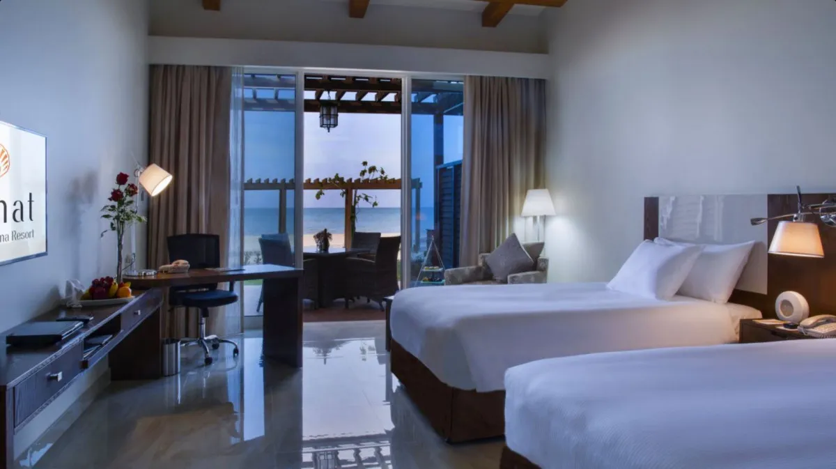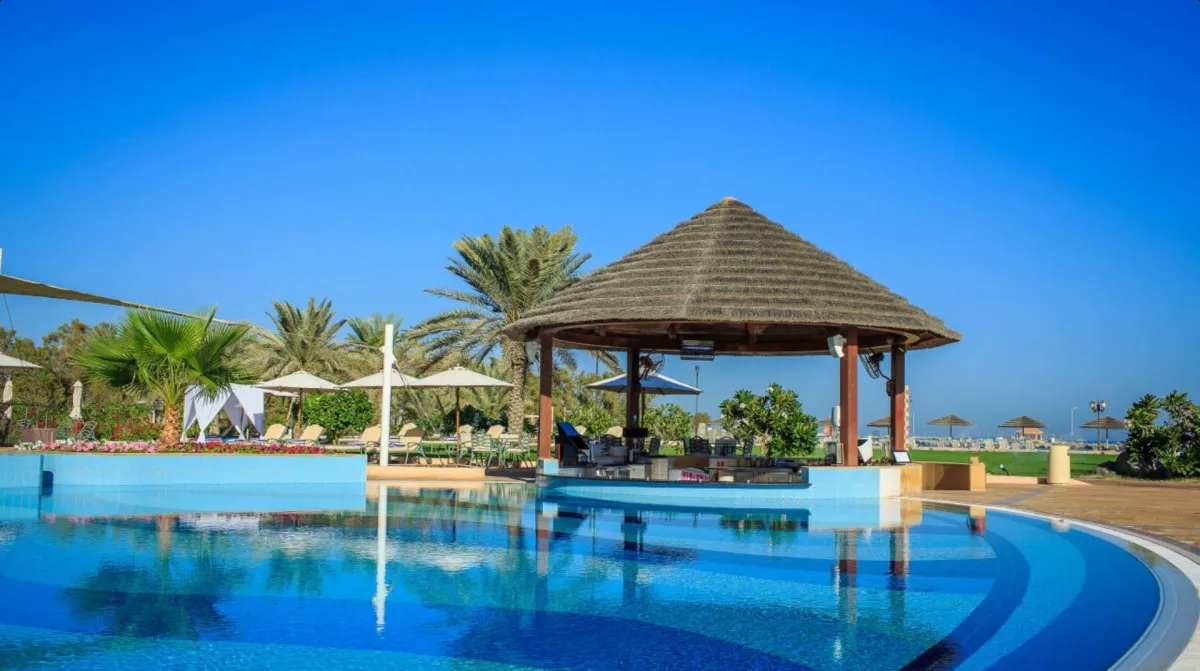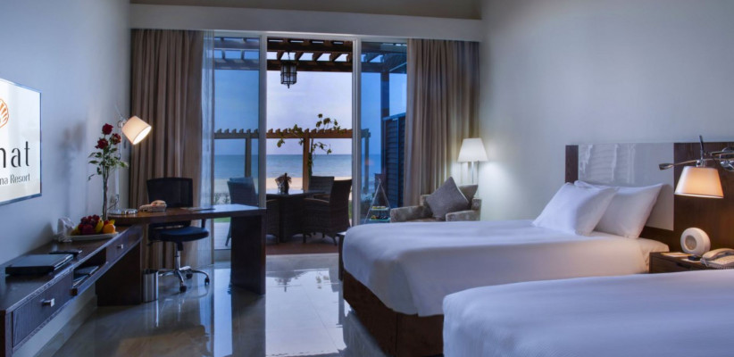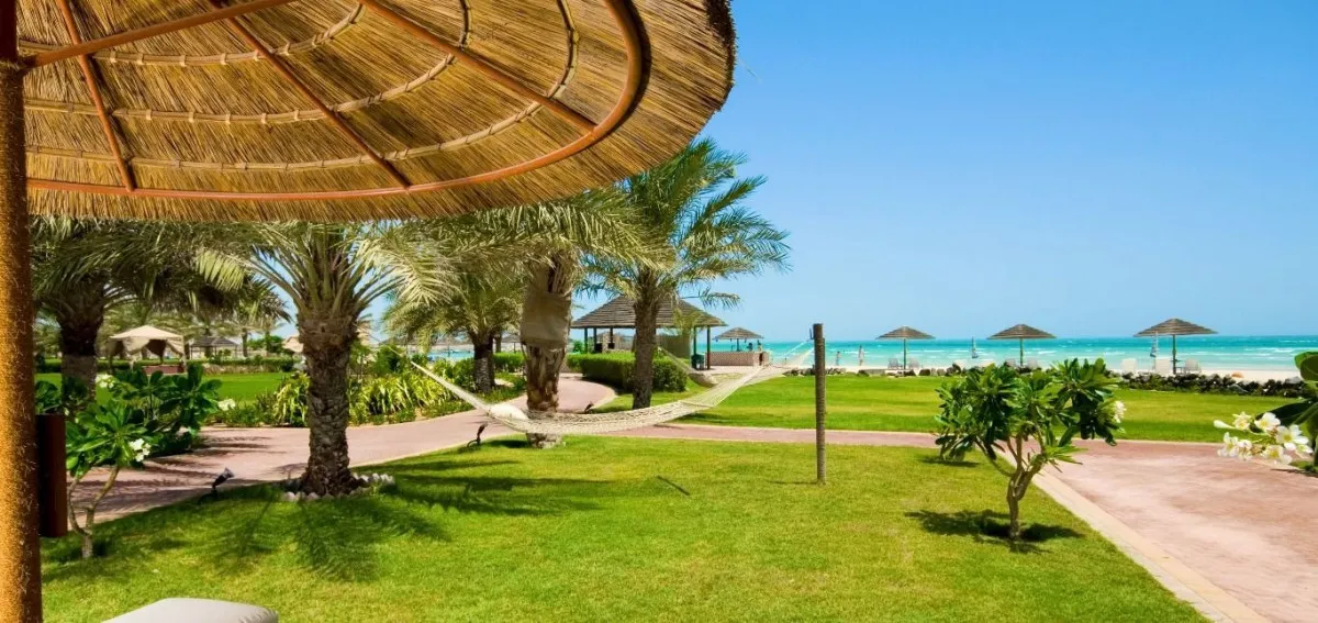 Danat Jebel Dhanna Resort расположен на западном побережье Абу-Даби, прямо на берегу Аравийского залива. Курорт располагает протяженной частной пляжной линией длиной около 800 метров, что создает атмосферу уединенного пляжного отдыха вдали от городской суеты.