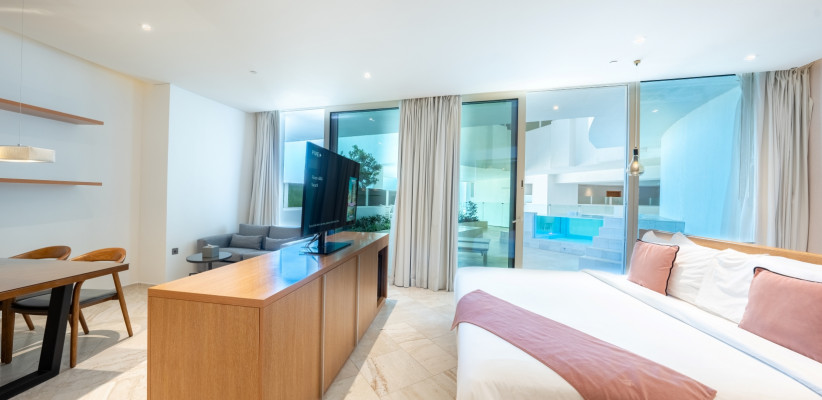 75 м2 (с балконом 150м2), номер с открытой террасой и собственным джакузи, панорамные окна, гостиная и спальня. Количество гостей: 4 взрослых или 1 взрослый + 3 ребенкаSuperior Interconnecting With Balcony