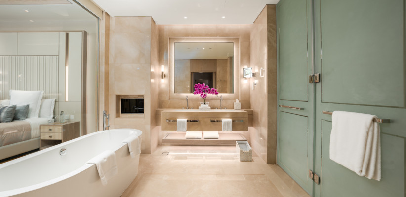 299,49 м2, терраса с видом на море, три спальные комнаты с кроватями размера king-size, гостиная, кухня, обеденная зона, четыре роскошные ванные комнаты, частный бассейн. Максимальное количество гостей: 7.Four Bed Skyline Suite W/ Pools