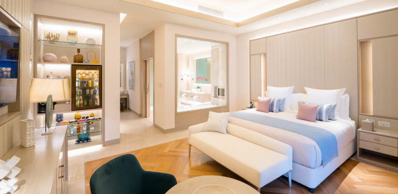 266,24 м2, терраса с видом на море, три спальные комнаты с кроватями размера king-size, гостиная, кухня, обеденная зона, три роскошные ванные комнаты, частный бассейн. Максимальное количество гостей: 7.Encore Suite