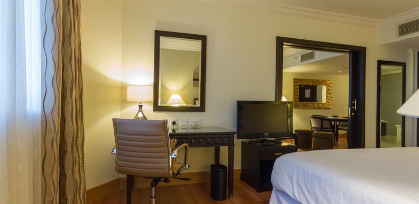 Executive Suite площадью 57 кв. м., гостиная с полностью оборудованным рабочим столом, доступ в Executive Lounge где предложат бесплатный кофе, чай, завтрак и доступ в интернет в течение дня, а также коктейли с 18:00 до 20:00.